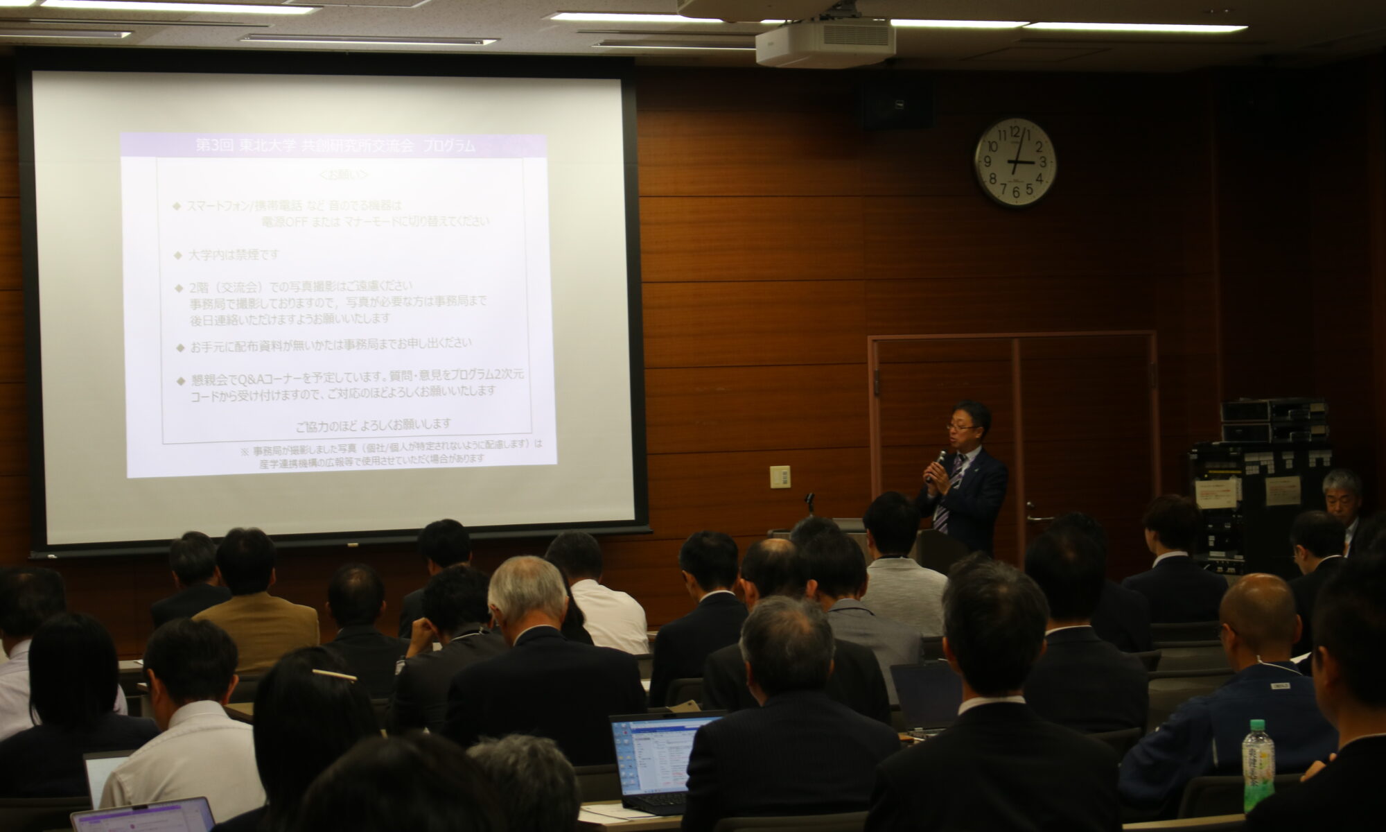 2025年10月29日に各共創研の運営責任者、運営支援責任者、運営メンバーなどが一堂に揃って交流会が開催されました。100名以上の参加者が企業の枠を超えて交流することができました。荏原製作所からは、曽布川部長、田中課長、東北大からは佐藤准教授、髙村教授が参加しました。