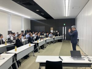 2025年10月29日に各共創研の運営責任者、運営支援責任者、運営メンバーなどが一堂に揃って交流会が開催されました。100名以上の参加者が企業の枠を超えて交流することができました。荏原製作所からは、曽布川部長、田中課長、東北大からは佐藤准教授、髙村教授が参加しました。
